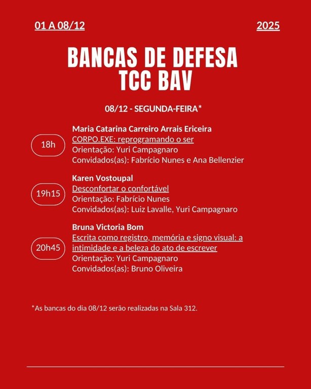 Calendário das Bancas de Defesa de TCC 2025 - BAV