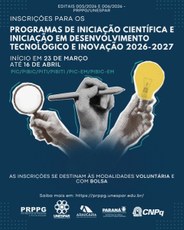 🔬 Inscrições para os Programas de Iniciação CientÃfica e Iniciação em Desenvolvimento Tecnológico e Inovação 2026-2027