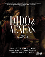 Na próxima semana, nos dias 15 e 17, a Camerata OSEMBAP e o Núcleo de Performance (Ópera) EMBAP/UNESPAR se juntam em comemoração aos 78 anos da Escola de Música e Belas Artes do Paraná. Para a ocasião, será apresentada a ópera “Dido e Aeneas”, do compositor inglês Henry Purcell, com libreto de Nahum Tate.