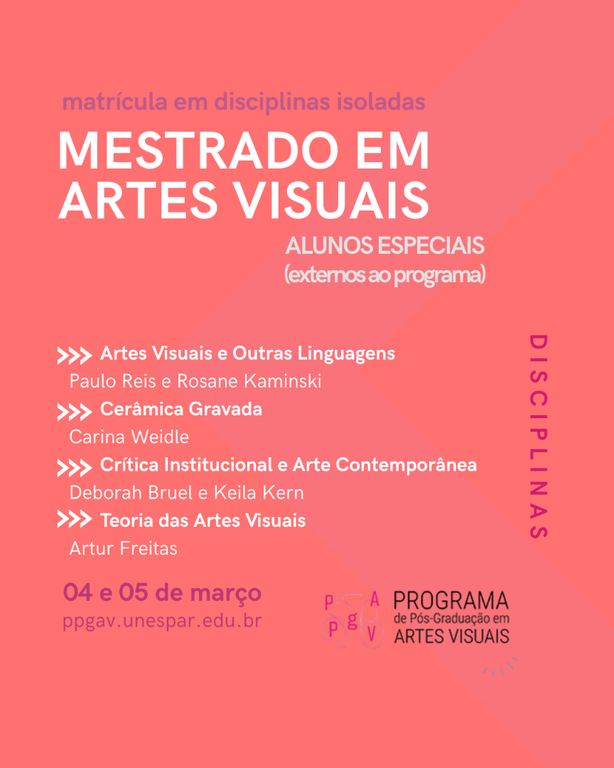 Programa de Pós-Graduação em Artes Visuais (PPGAV/UNESPAR) divulga o Edital nº 02/2026 para matrícula de alunos especiais
