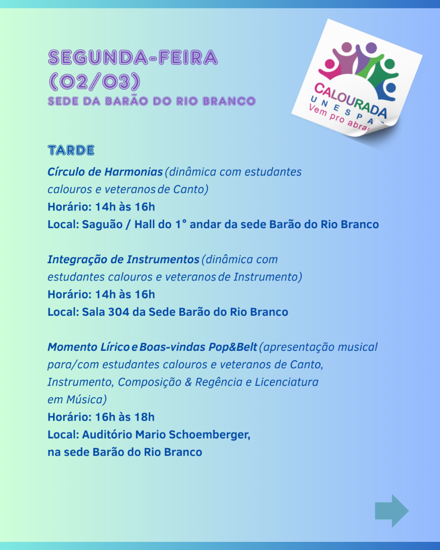 Programação Calourada 2026 Sede Barão do Rio Branco