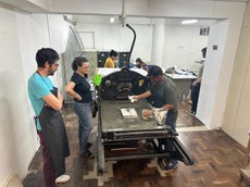 Durante a III Jornada de Pesquisa do BAV, o Laboratório também contou com a presença do mestre impressor José Carlos dos Santos, que atuou por mais de vinte anos com impressão litográfica utilizando esses mesmos equipamentos no Escritório Almavera, compartilhando sua experiência e conhecimento com a comunidade acadêmica.